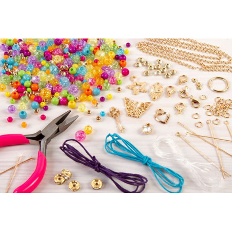 - Komplet vsebuje: 250 različnih krogliv, 35 kovinski delov, mini klešče, 2 vrvici, 6 obeskov, verigo, navodila